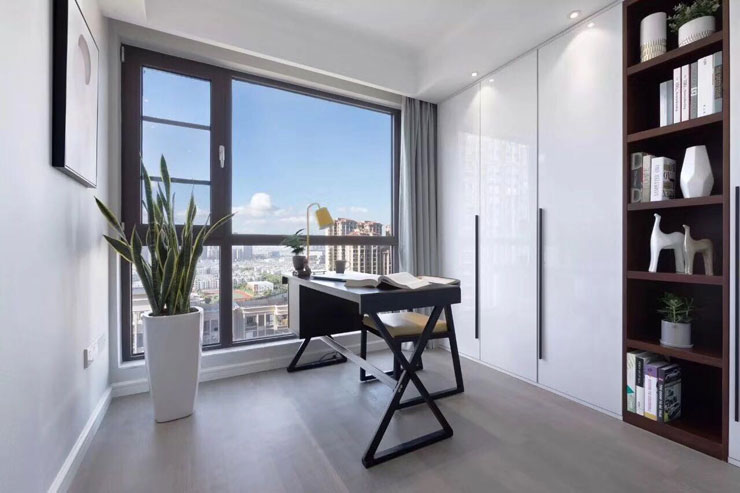 本次设计采用现代风格的表现方式,每一处都在着重展现装饰结构的形式美,错落不规则钢琴烤漆护墙板与简洁利落的家居饰品相映衬,既尊重材料的性能,又实现了以功能布局为核心却又不对称的非传统协调感。