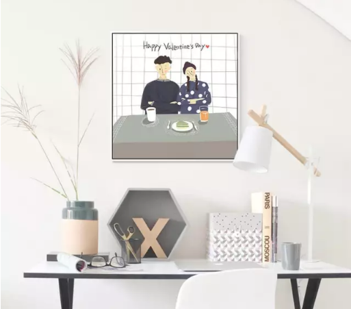 装饰画是一种并不强调很高的艺术性,但非常讲究与环境的协调和美化效果的特殊艺术类型作品,正如这幅装饰画以温馨的二人世界用餐氛围为主题,营造出的浪漫的氛围,让人不自主的拥有一份愉悦的用餐心情,于这样的环境用餐,想不食欲大增都难。