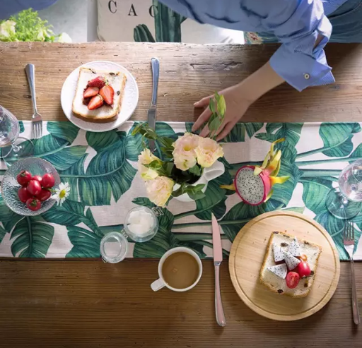 看惯了一成不变的餐厅,不如让一抹清新自然来装饰你的餐桌。这款绿色植物系列的桌旗,采用棉麻面料制成,手感舒适,安全健康,加厚的棉麻面料,能很好的帖服桌面,塑造自然随意的垂感。高清印染技术,健康环保不褪色,且历久如新,还原每一株植物的形态,为餐厅带来一抹清新的绿意。