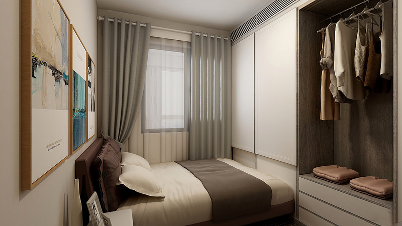 客卧空间比较小,床位做了个整体衣柜加书桌,功能齐全,而其他配饰的点缀也给空间带来一种柔和。