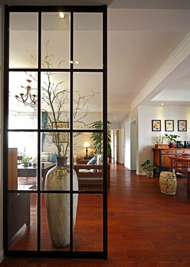 大块玻璃也是一种常见的隔断,显得更为轻巧,装饰性也更强,磨砂玻璃更能给人带来一种雾里看花的朦胧美。