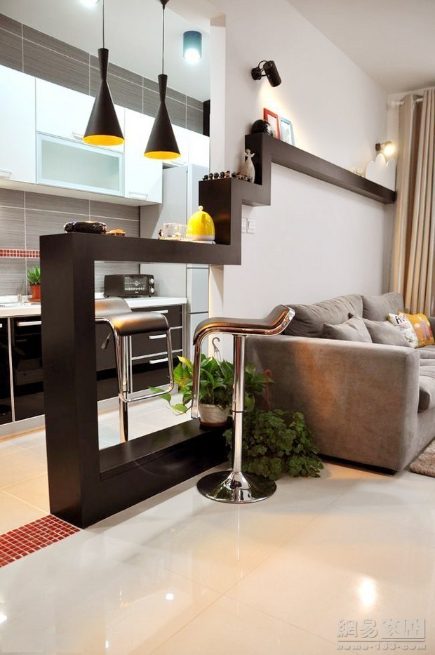 利用大小不一的柜子对客厅空间进行有效的分隔,而且位置可以改变,从而增加住宅室内空间的灵活度与多变性。