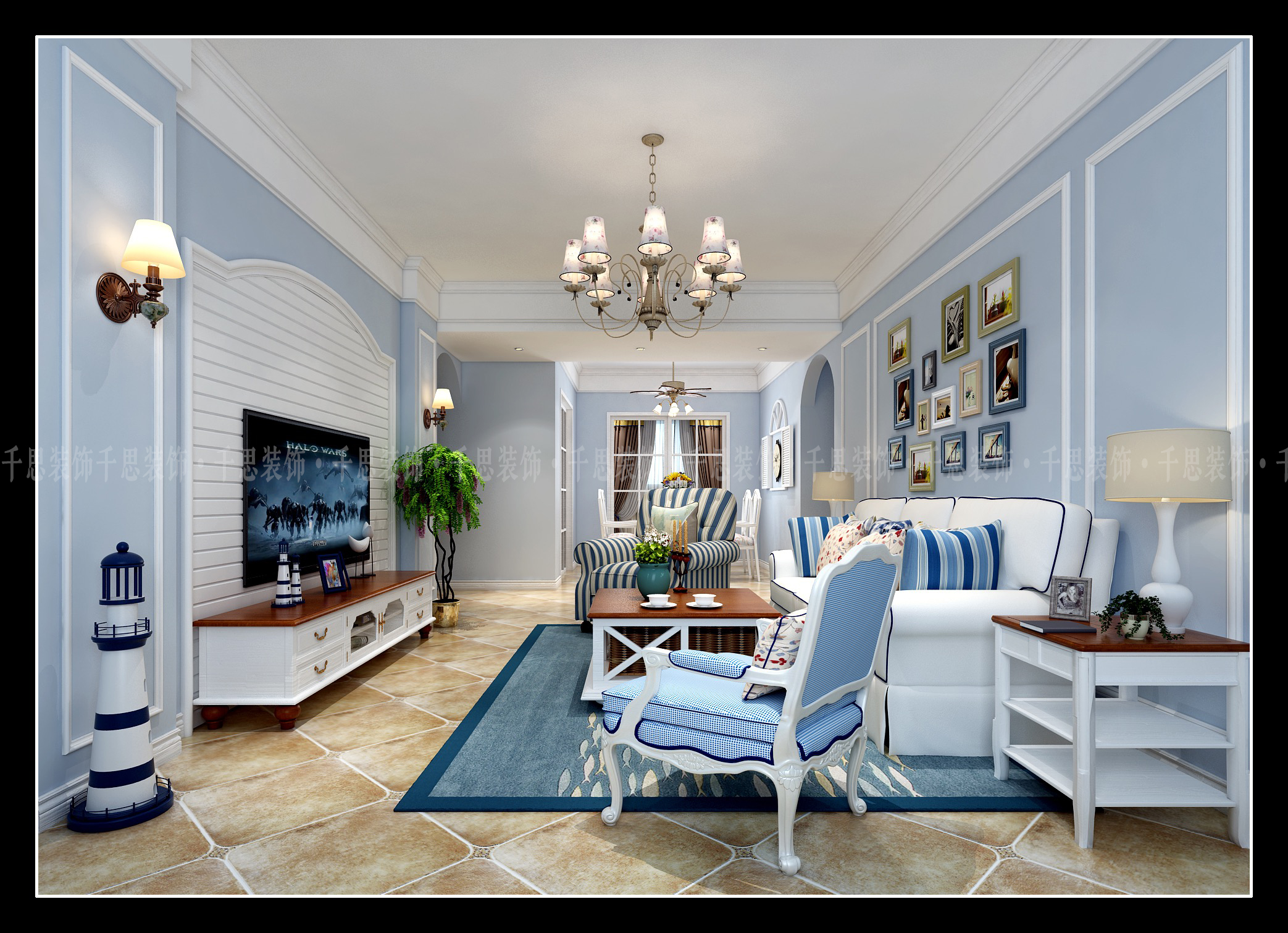 A:本次设计采用地中海风格为设计基础,以白色,复古黄,天蓝色为主,主要利用这几种颜色所搭配出来的效果给人眼前一亮的感觉,在空间上利用线条的动感营造一种活跃的氛围,颜色上给人大海广阔感,用材上追求环保舒适为主。