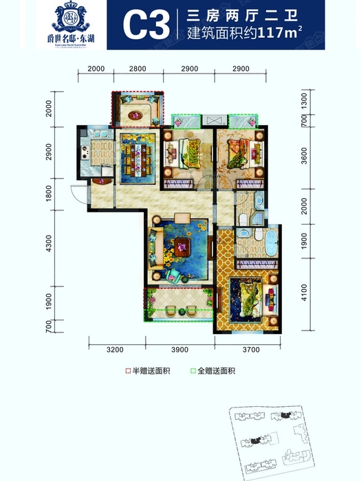 C:项目面积:117㎡(建筑面积)