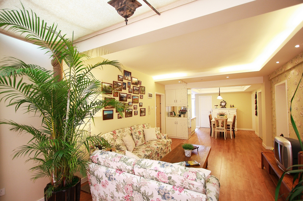 本案设计师注重自然典雅,讲究空间的开放性,造型正气大方,简单而不繁复。碎花布艺,平易近人,自然清新。