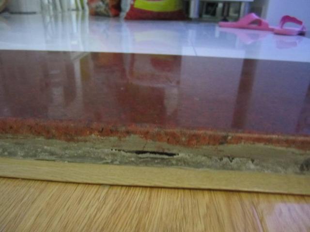 然后再用建筑胶或是硅酮胶打一圈。这样就可以保证即使水泥砂浆有裂缝而与门槛石脱开,水也不会从缝隙中渗透出来,另一方面,还很好地保证了门套不会因为水的潮气而变色腐烂掉。
