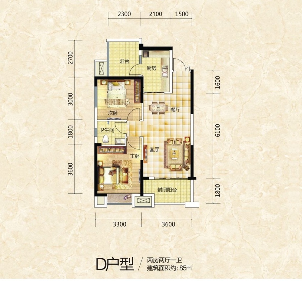 85平 两室两厅 简欧