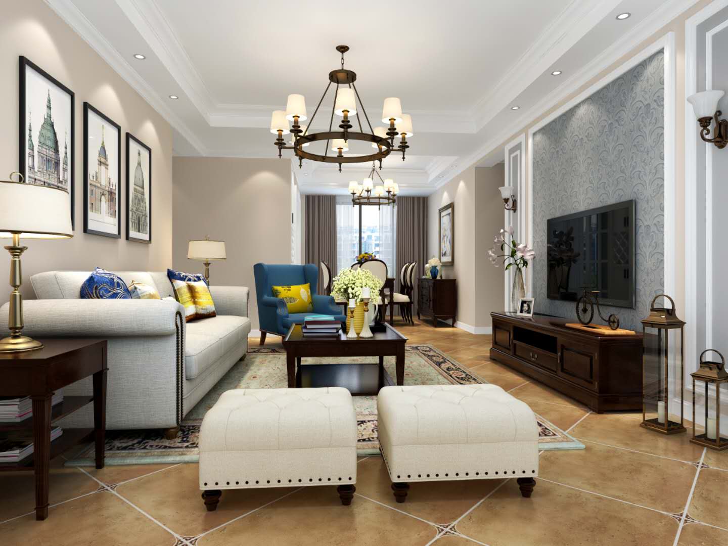 2、家居自由随意、简洁怀旧、实用舒适;暗棕、土黄为主的自然色彩体现了文化感与贵气感
