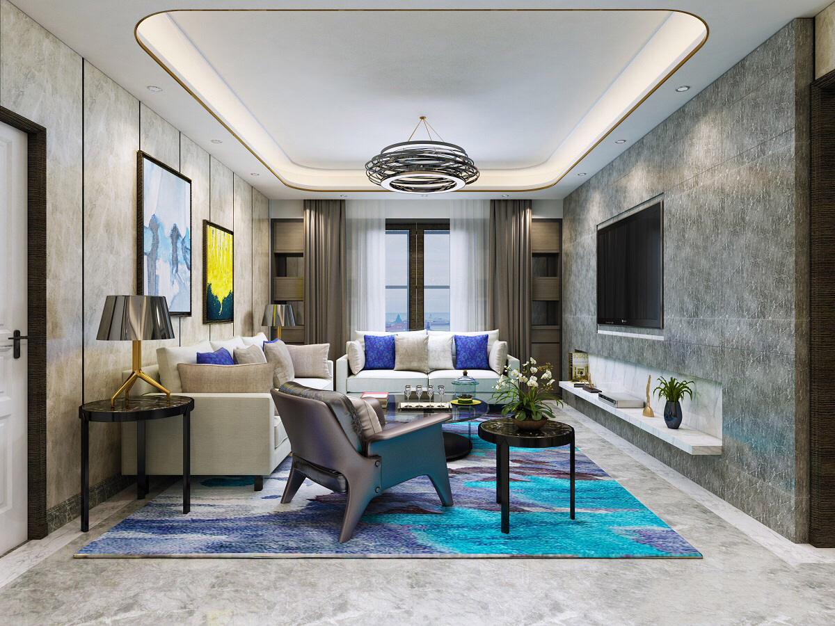 1 采用灰色大理石背景墙 显得整个客厅很有格调