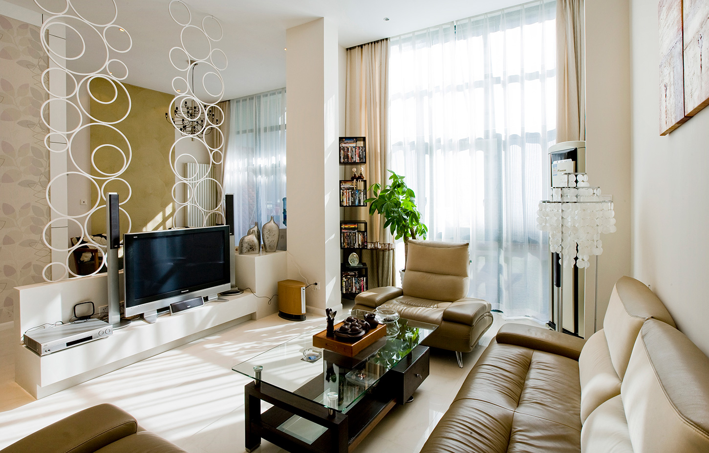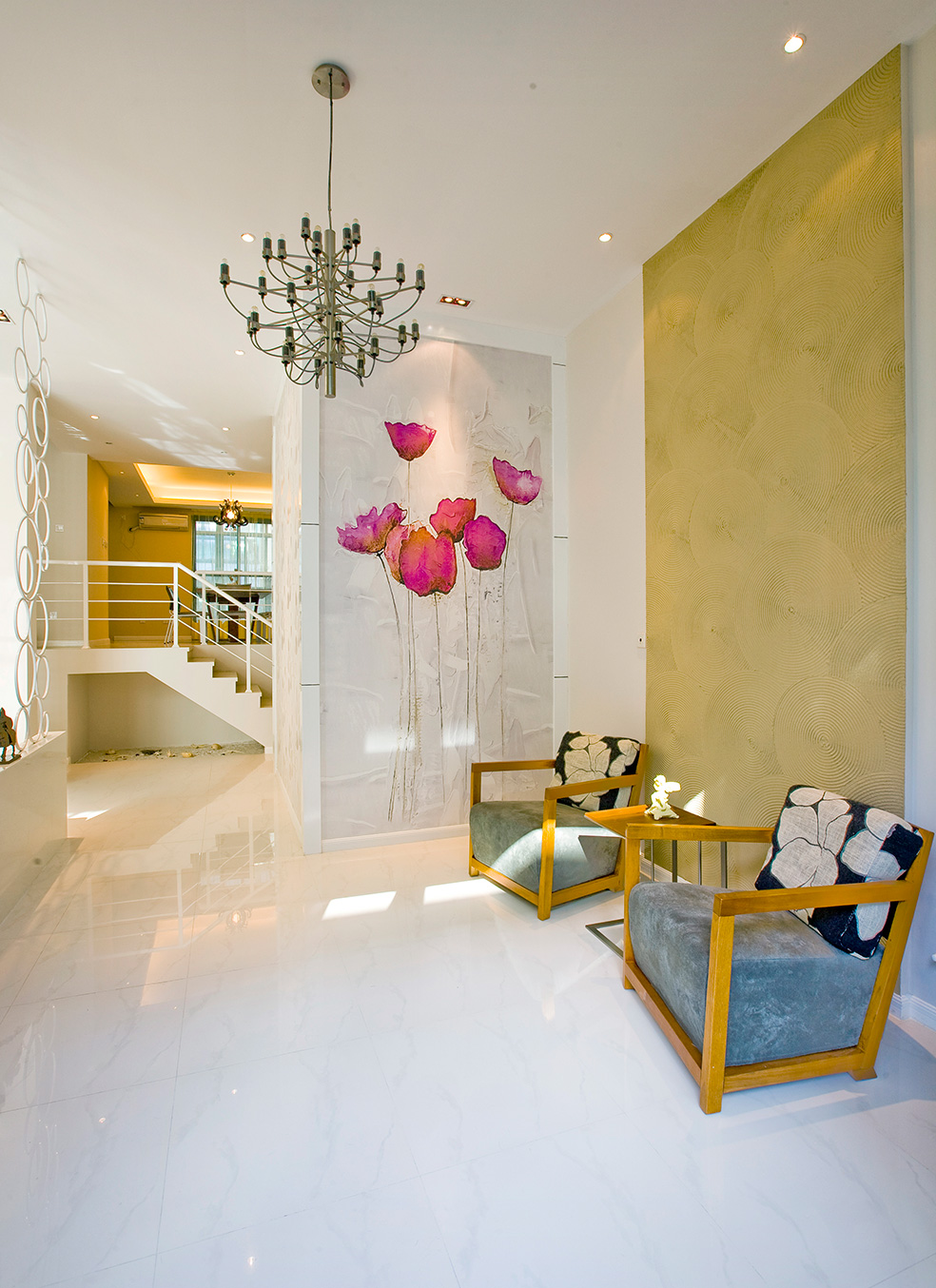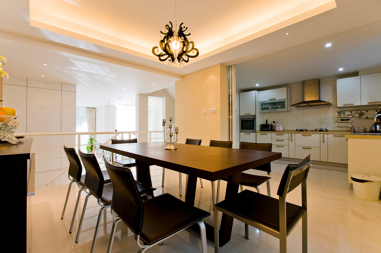 本套案例,设计师以简洁的表现形式满足业主对空间感性、理性的需求。选择的材质都是追求空间的通透,而家具样式,地面、墙面的设计,及软装配饰的选择,都以造型简洁,质地纯洁、功能性强为主。夫妻两的工作都相对比较繁忙且压力比较大,为此他们需要一个更为简单的环境给自己的身心一个放松的空间。这套现代简约风格设计师,以宁缺勿滥为精髓,合理的简化居室,从简单舒适中体现生活的精致。