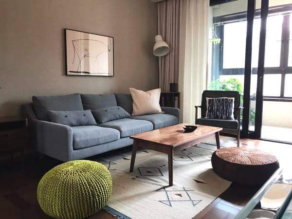 客厅面积不大,铺了复合木地板,价格实惠效果也很好。沙发我们挑了很久,终于找到这款满意的,颜色高级质感也不错!体积小巧也很适合我们家。