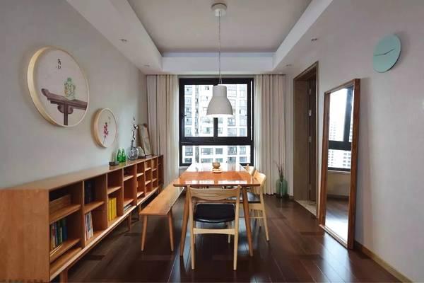 餐厅由餐桌和一个多用收纳柜组成,简简单单收拾的也很温馨。