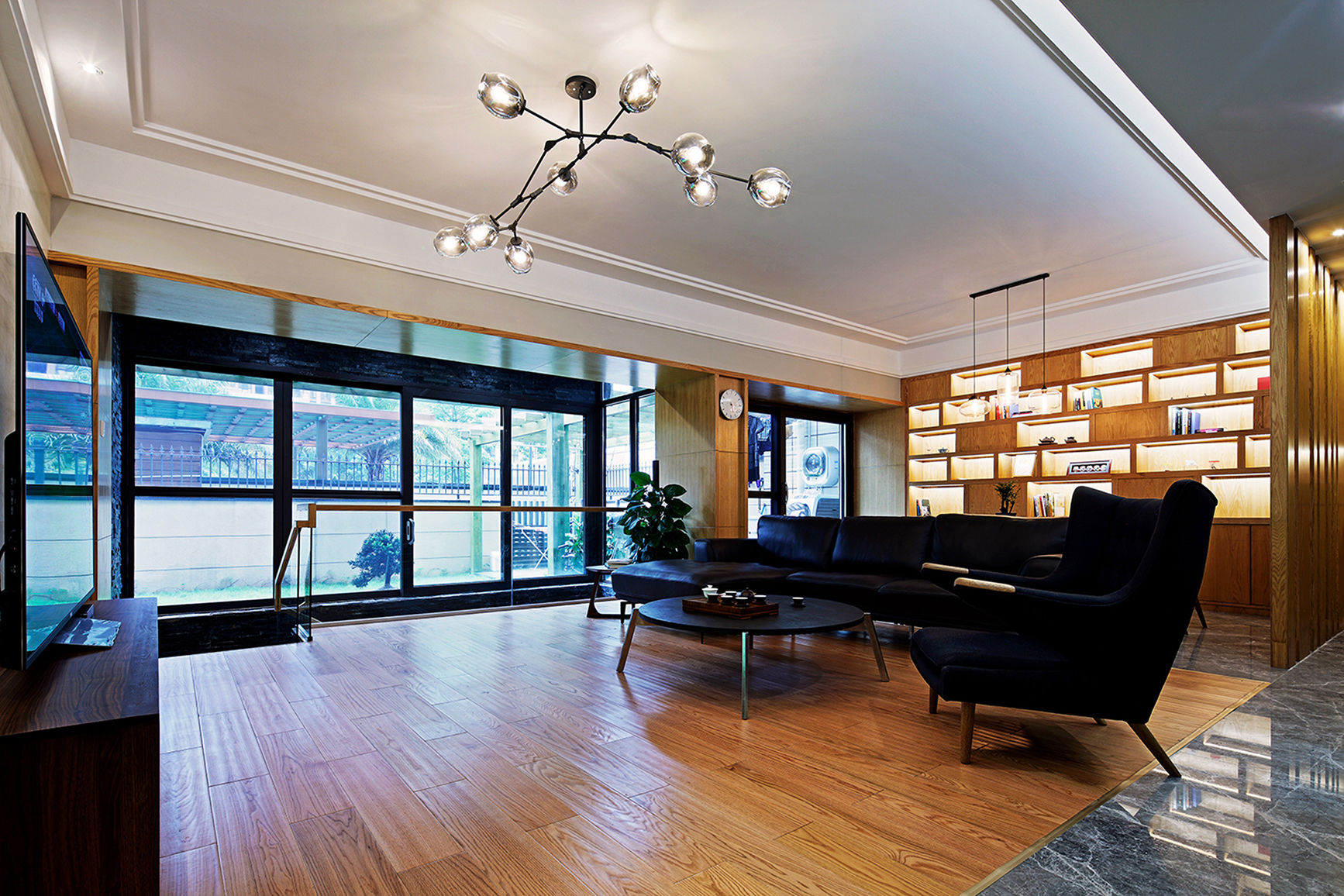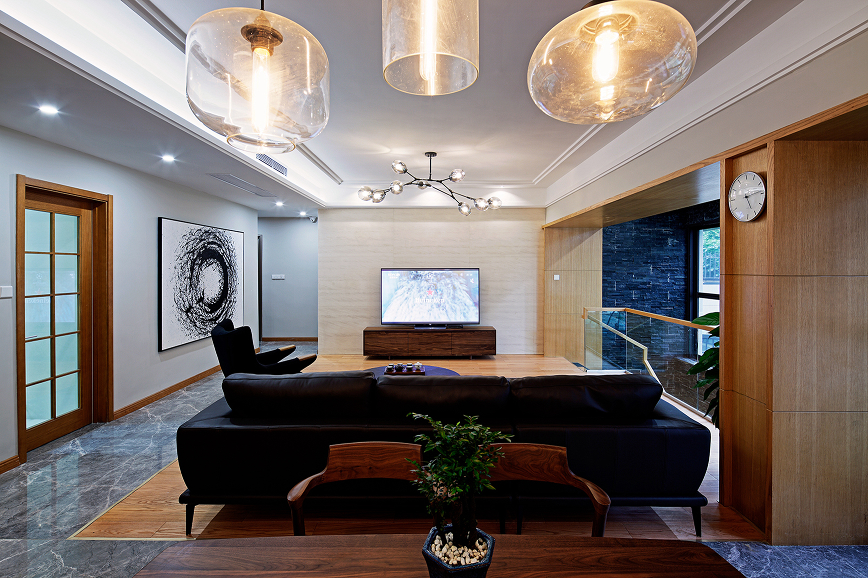 黑色皮沙发恰到好处的压住整个空间的气场,优雅却不张扬,同时带给我们一丝小小的复古情怀。