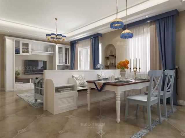 如果家里是开放式厨房,且客餐厅连在一起,可以在沙发背后做一个卡座餐椅,当作餐椅的同时形成空间隔断,这样在把区域分隔开的同时也不会很生硬。