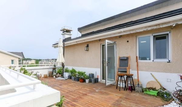 上 黄色部分为平顶区域,包括由尖顶改为平顶的厨房,卫生间,玄关。以及封露台改为娱乐室。