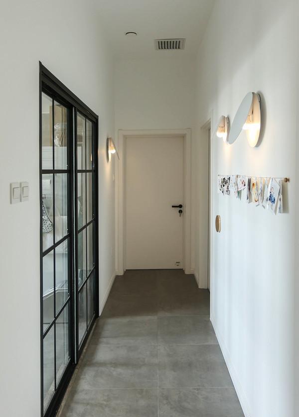 客厅另一侧,通往主卧和儿童房的走廊较长,每隔一定距离就有一盏壁灯照明。