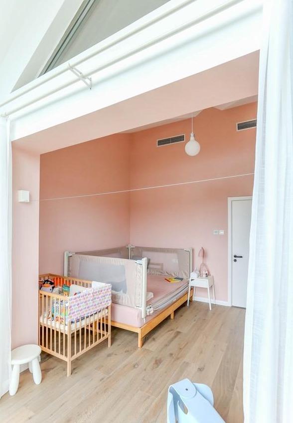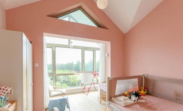 哪个女孩小时候不期望有这样一间房呢?高高尖尖的房顶,大落地窗,粉色的墙漆。