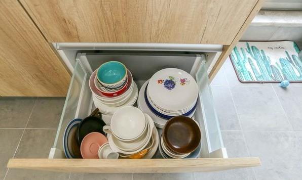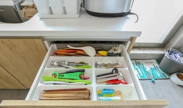许多零碎的东西都放进了橱柜里,中厨一眼望去十分整洁。