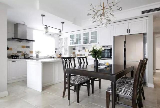 125㎡的四室一厅装修案例,因为平时业主只有2个人居住,所以总体面积是足够的。整体风格为纯白色,餐桌电视柜等几件大件家具选用深色的实木材质,空间层次分明的同时更加沉稳大气。
