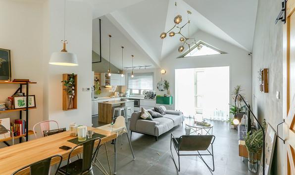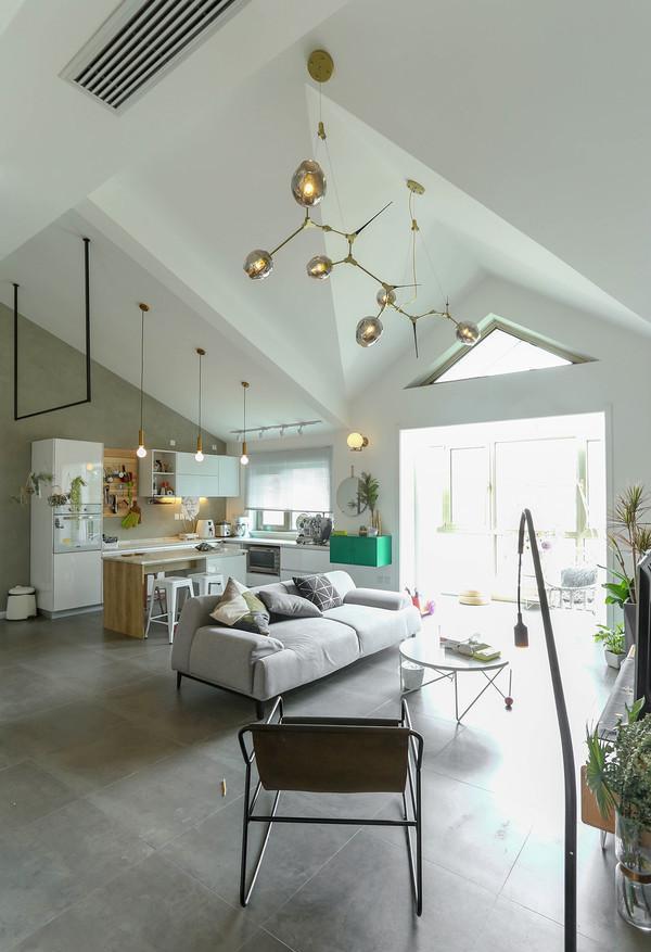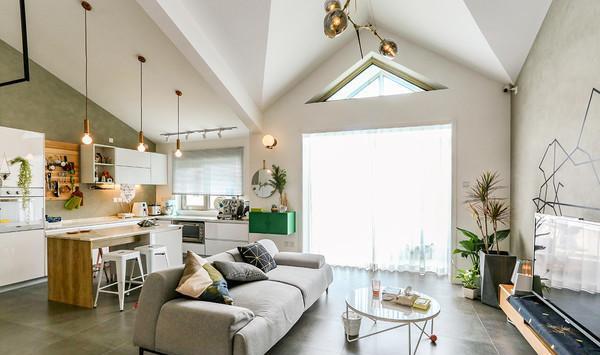 为了保证舒适度,平时主要活动区域,客厅卧房还是保持了尖顶。