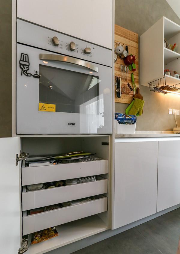 考虑到大王对烘焙的高要求,橱柜与台面都是定制的。