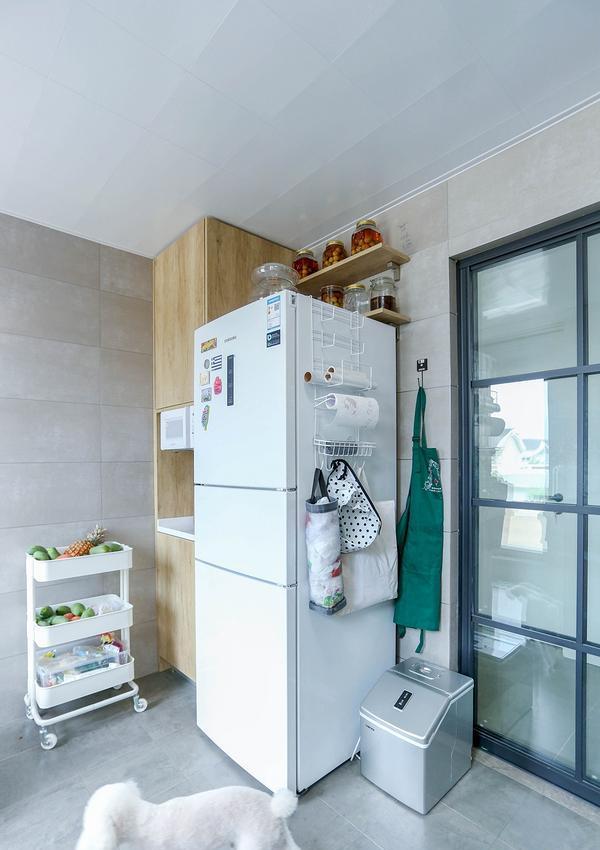 冰箱上面的空间也被充分利用起来,放一些腌制品。反正平时不会去拿,放的高一些也无所谓。