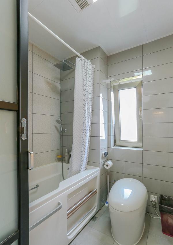 大王家一共两个卫生间,主卧与客卧各一个。布局类似,墙砖都选用的颜值革命2.0墙砖。