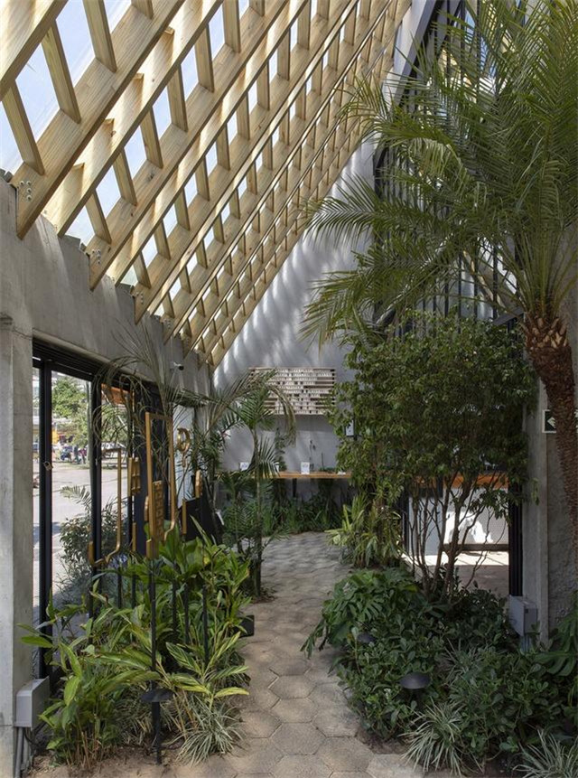 在钢筋混凝土的森林里,被冰冷的金属环绕着,灰色调带着一种生人勿进的距离感,而肆意生长的植物,带着顽强而蓬勃的生命力,给空间带了温暖和活力。