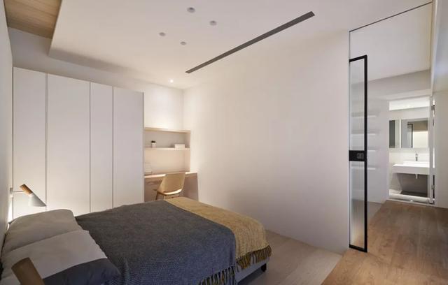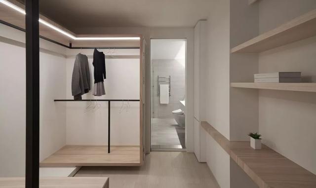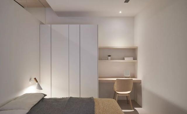 这个卧室的设计更加适合主卧,长条形书桌可以囤下女主所有的化妆护肤用品,开放式衣帽间让出行挑选合适的LOOK更加轻松。