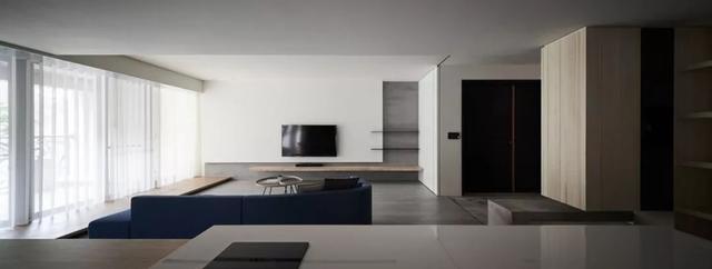 全景落地窗部分做了一条长长的廊道,连接客厅、餐厅及卧室。平时可以蜷坐在廊道上,亲子互动或品茶阅读。沙发背对餐厅,既有隔断作用,又防止餐区客厅混用,便于清洁。