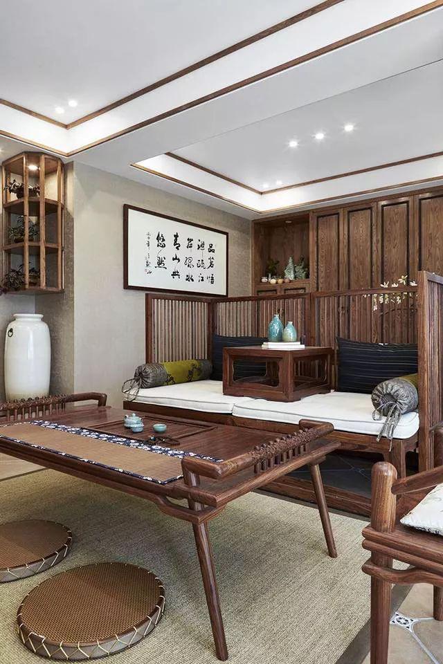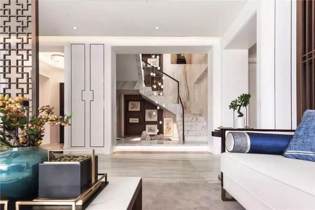 老一辈偏爱的传统中式风格中也多见线条设计,但线条相对厚重方正,给人严肃庄重的感觉,而加入了窄框线设计的轻奢新中式风则化繁为简,用简单利落的装饰线条取代厚重的条条框框,少了几分严肃,多了几分精致简约。