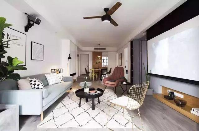 ▼若是不想在地面材质上花心思,也可以选择用地毯来区分客餐厅。地毯不仅具有极高的装饰性效果,而且它还有很明显的边界感,你可以选择放在沙发茶几下面,也可以选择铺在餐桌餐椅下面,但从方便程度上来说,前者是更好的选择。