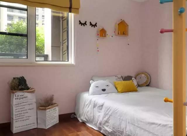 儿童房采用了清新活泼的淡粉色调,搭配可爱的玩偶,使得儿童房更有童趣。