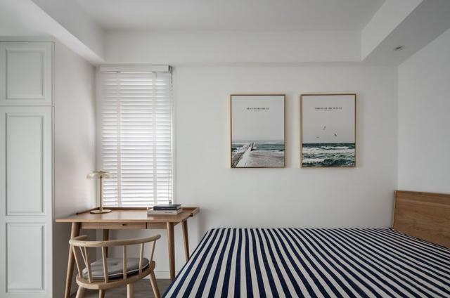 ▲ 次卧因父母偶尔来小住,设计以清雅舒适为主。墙面以两幅简约挂画装点,带来静谧而悠然的气息。