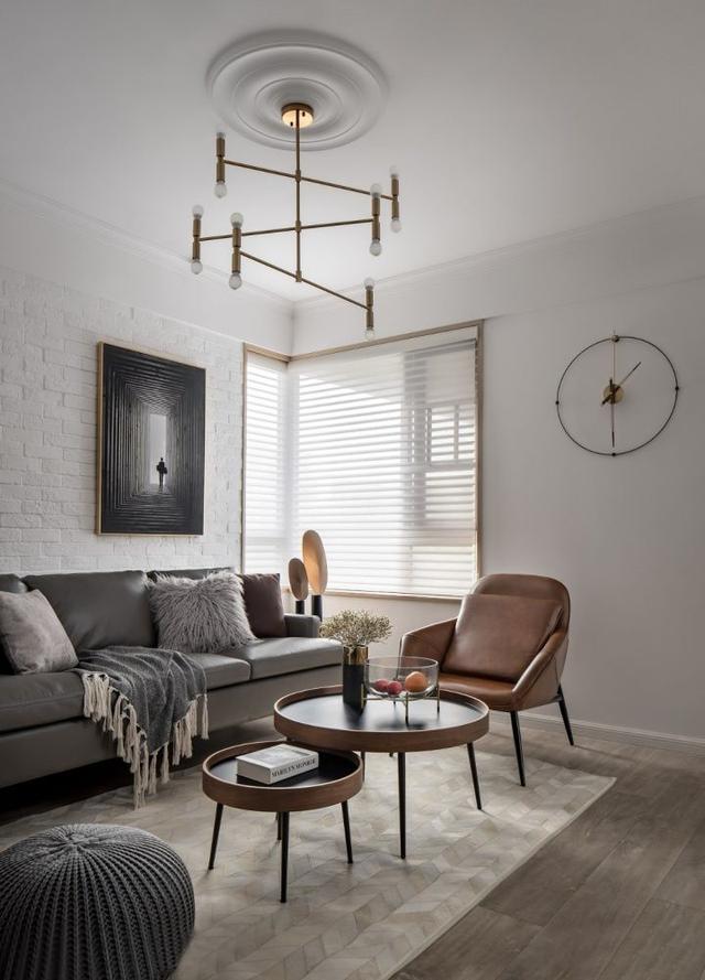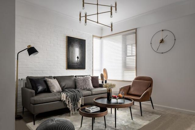 ▲ 通透、简洁的客厅,没有做过多的复杂设计,而是将小巧思集中在软装方面。宽大的灰色皮质沙发质感满满,同色系的抱枕点缀其上,丰富了空间层次感,让人不由得想深陷其中。