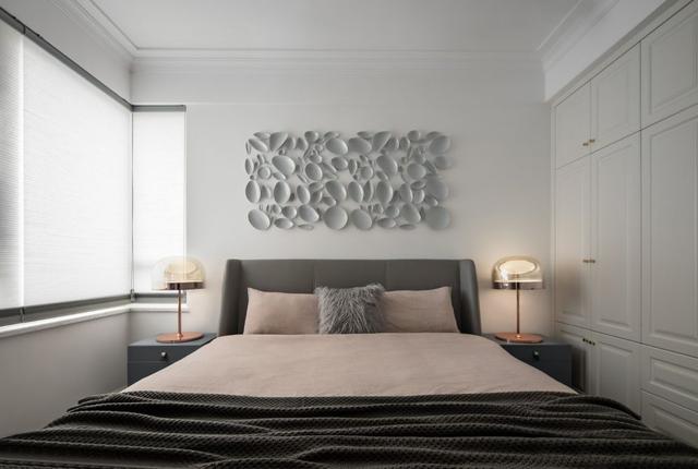 ▲ 次卧因父母偶尔来小住,设计以清雅舒适为主。墙面以两幅简约挂画装点,带来静谧而悠然的气息。
