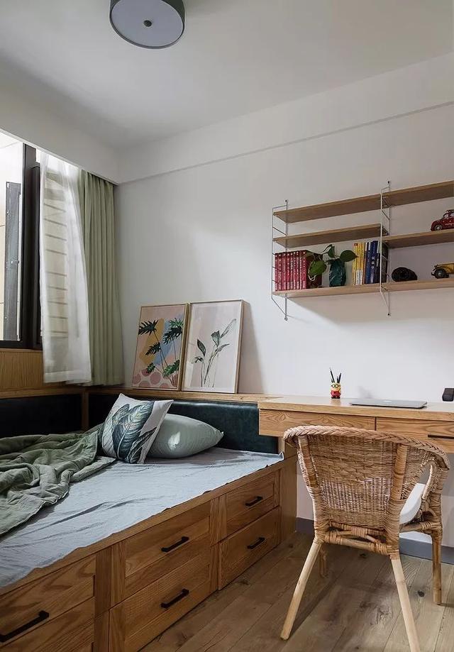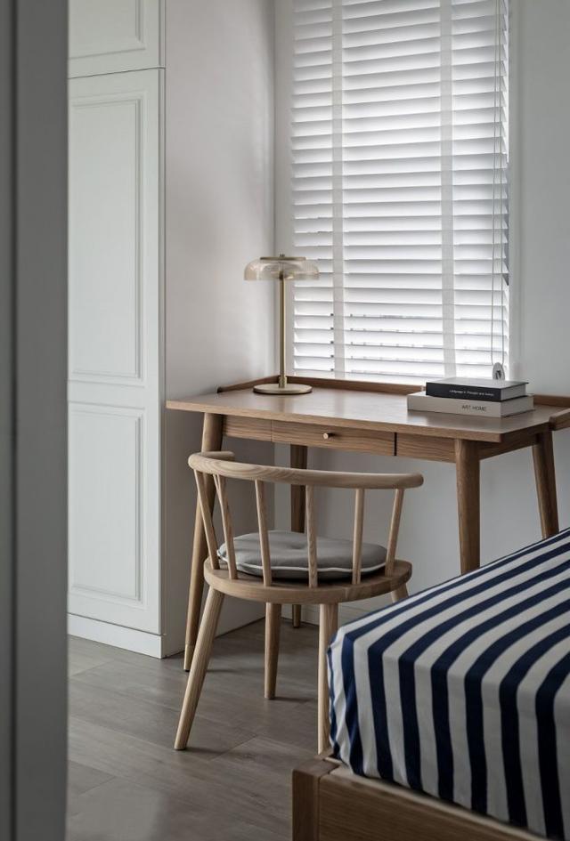 ▲ 白墙搭配木质书桌椅和木床,一切都显得清爽自然。