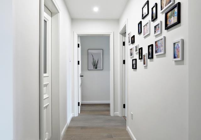 如果你喜欢在墙面做照片墙的话,不妨可以把照片墙搬到过道这里,这种设计方案也比较适合比较窄的过道,几乎不占用过道的空间,同时又可以起到很好的装饰的作用。