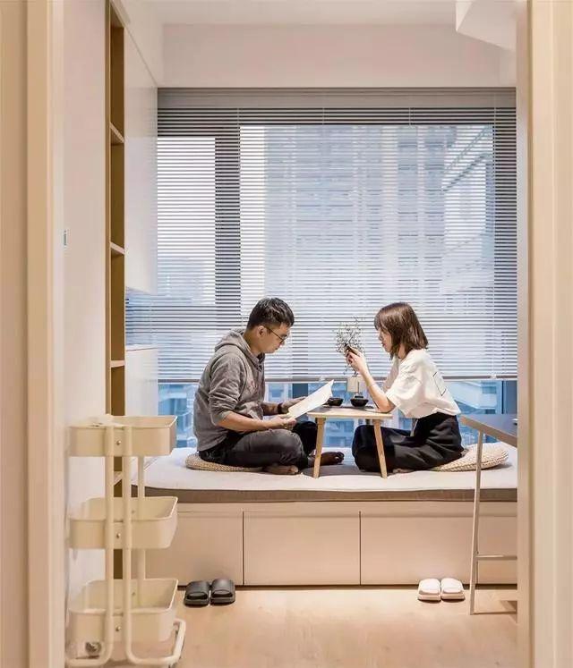 闲暇时间,男主人会坐在榻榻米上一边喝着茶一边看书,女主人会刷着微博开怀大笑,与男主人分享她觉得有趣的东西。