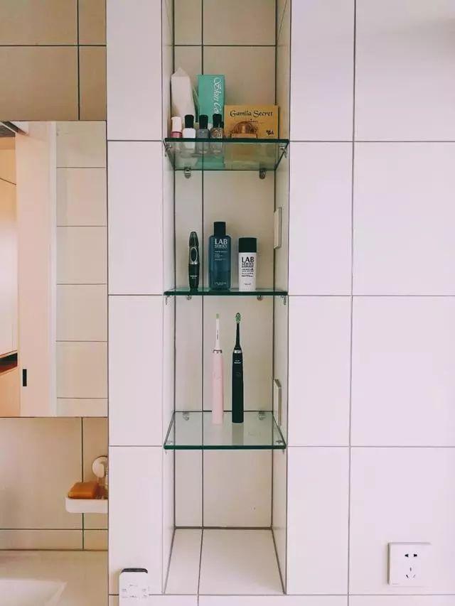 壁龛的设计,更好地收纳了剃须刀、电动牙刷等生活用品,在侧面预留了插座位置,方便使用。