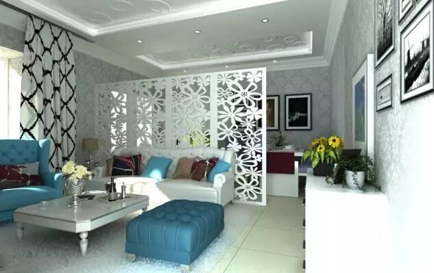 如果用墙来隔断沙发,可能就显得空落而且呆板,但是,选用这样造型精美的隔断,让人都忍不住想坐在沙发上,细细的查看每一格的花纹。