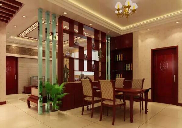 中国风的隔断,造型简洁,集实用性与美观性于一体,将餐厅和客厅空间有效的隔开,而隔断本身,还可以当做置物架使用,放上喜欢的古典造型工艺品,心爱的书……