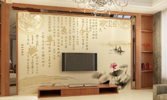 中式风格的背景墙设计,用简单的汉字以及朴素的荷花塑造出了复古的感觉,又和整个家装风格协调起来,体现出古香古色的气韵。