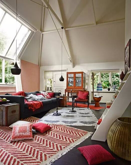有些别墅或是跃层的客厅顶部非常高,如果高的失去比例也并不好,让厅中的人没有安全感和亲和感,有一种身处公共空间的孤独感,因此高度要和面积成一定的比例,过高的空间可以在装修时通过吊顶适当降低一些,同时让主吊灯悬挂的低一些,增强客厅中的围合聚拢气氛。