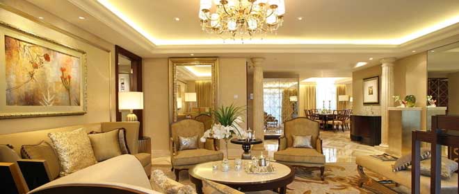 客厅主要是用于会客、聚会的地方,用吸顶灯会使客厅显得明快大方,具有时代感,灯光要富丽、明亮。