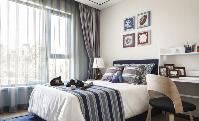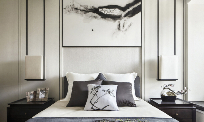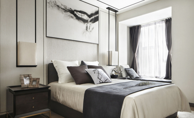 主卧的黑白灰色调,典雅自然