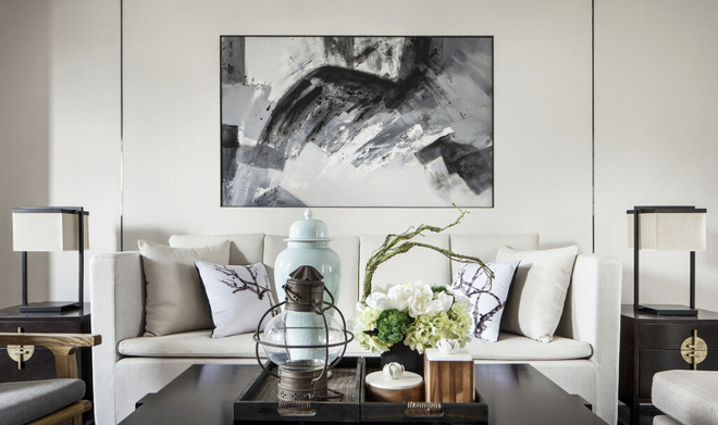 抽象的山水画装饰,淡雅的新中式风格