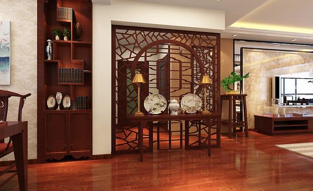 进门玄关,开门见美,一开门便是古色古香,文化气息深厚的木格栅屏风,摆一张典雅小桌,立两只精致美盘,浓厚的古典风迎面而来。木制木格栅加木制小桌,陶瓷的盘子和铜色灯点缀,几种简单的元素就能让中国风迎面而来。