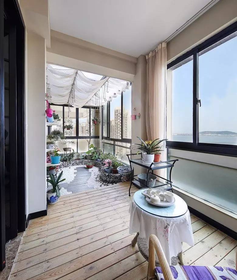 这个阳台的空间很大,是与书房相连的,既是阳台又是一个休闲区,整体的设计都很活泼生动,斑点色彩,有波西米亚的情怀。一半休闲、一半是花草区,兼晒台。没有装晾衣架,怕坏了整体味道,而是装了各色挂钩,可以挂花草,也可以晾衣服。这个区觉得不用说太多,直接看图就好。