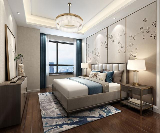 卧室软包墙面不需要复杂的设计,几块软包板,选择淡雅的中式花纹,整个房间的气氛就烘托出来。